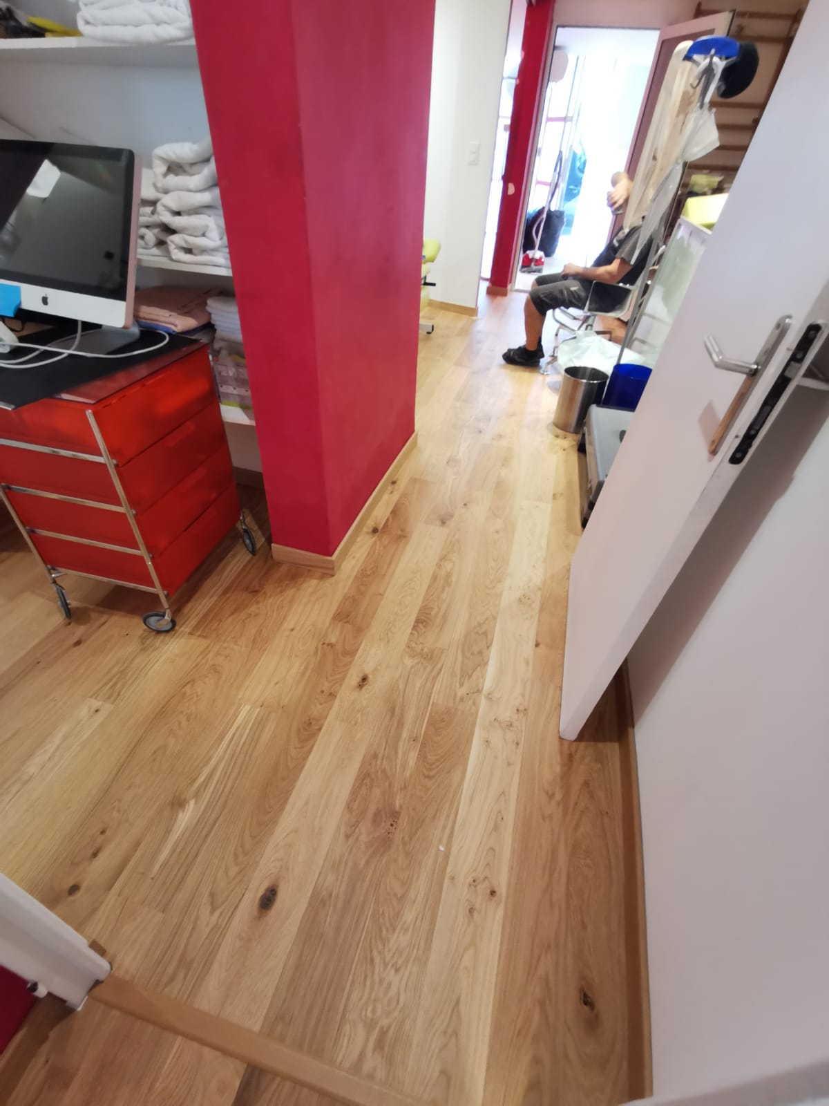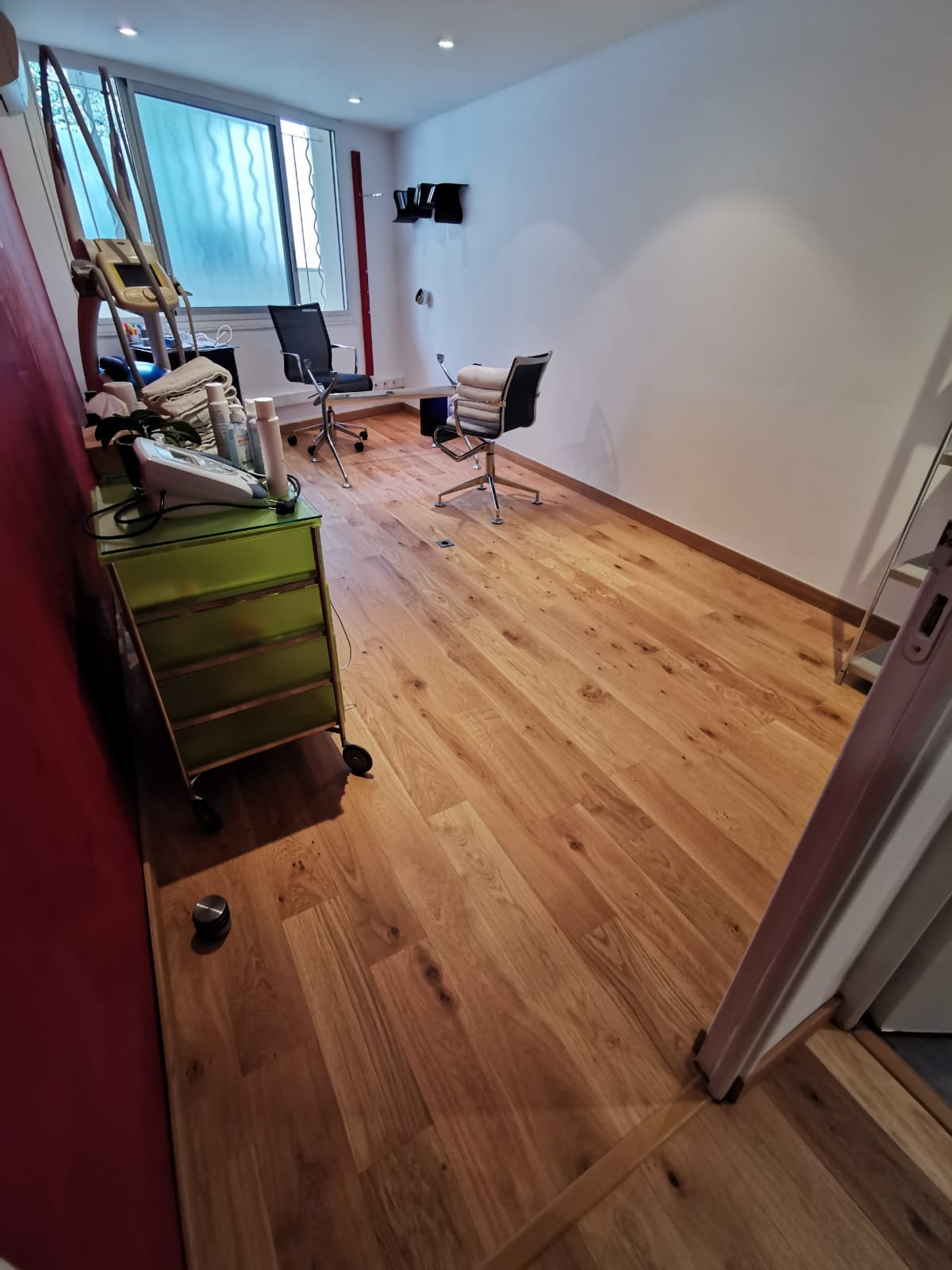 Une nouvelle pose de parquet contrecollé pour un cabinet de kinésithérapeute. Merci à eux pour leur confiance et leur accueil durant ces 3 jours.