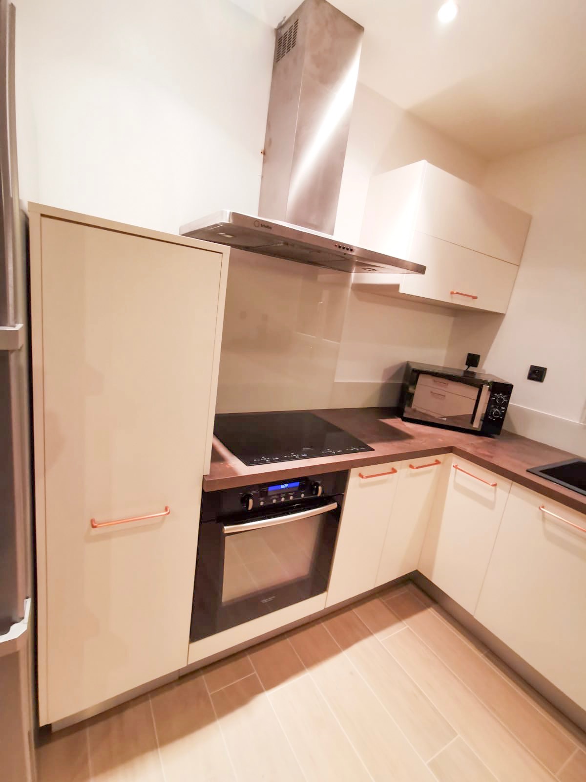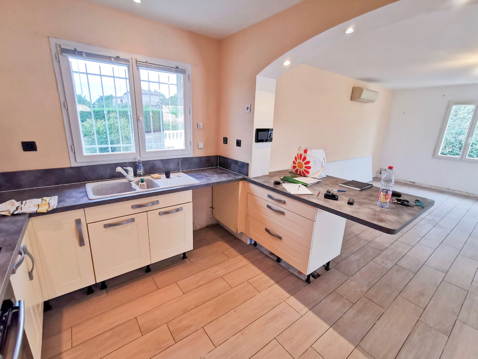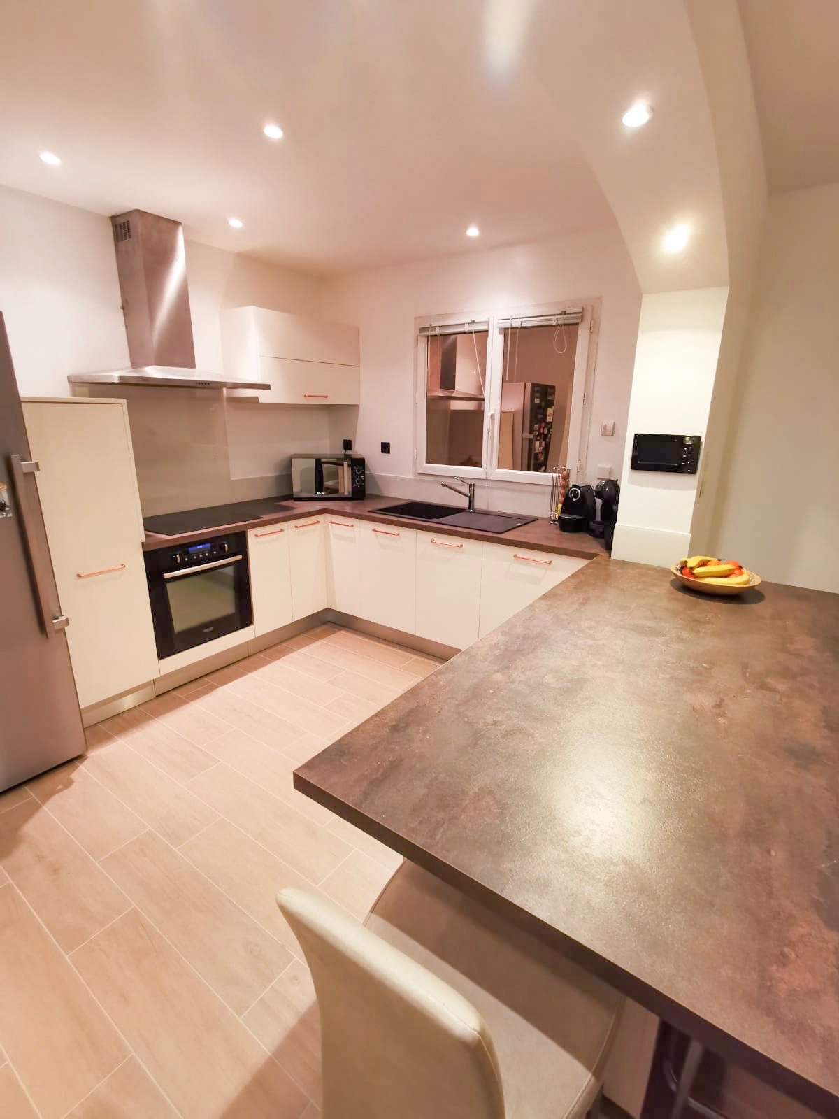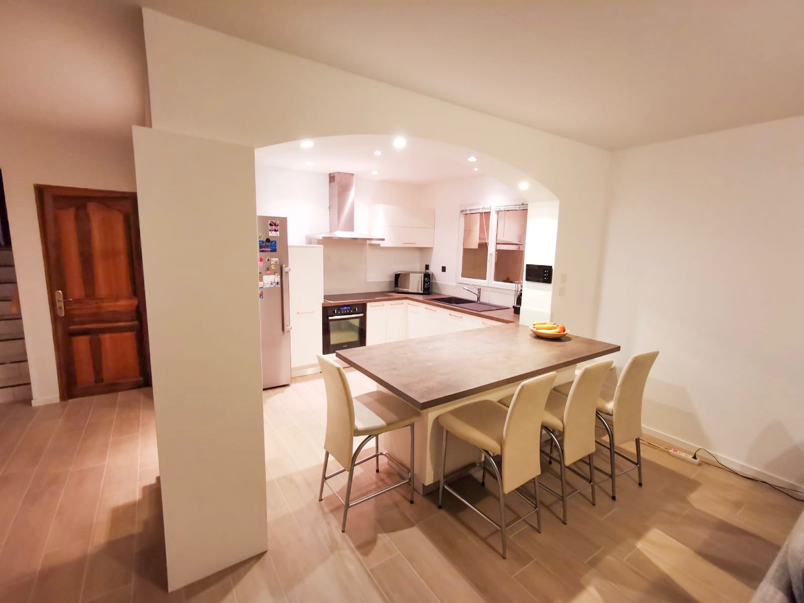 Pour moderniser ce lieu de vie, les façades, les poignées, le plan de travail, ainsi que l’évier ont été changé. Pour les finitions, une nouvelle crédence en verre, des plinthes en pvc décor alu, apportent désormais une touche plus moderne.